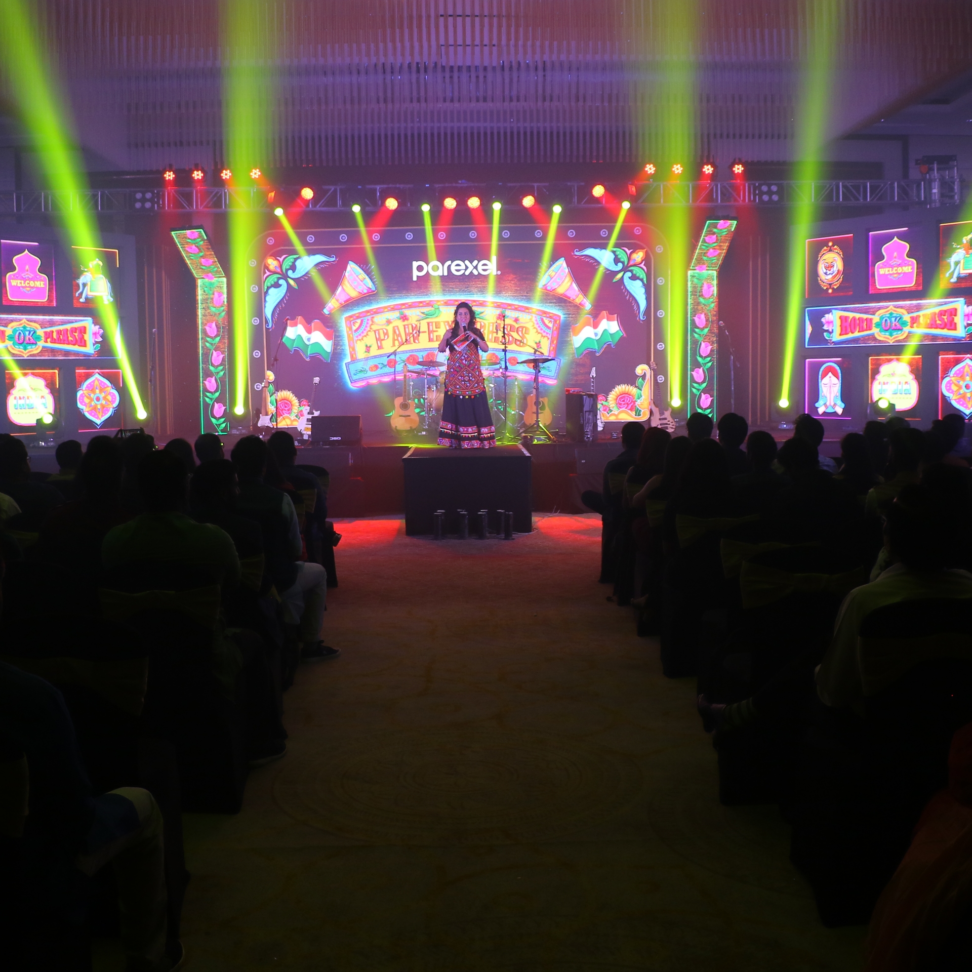 This clinical research organization approached us to share our ideas, plan and execute their annual day for 1000 employees. They wanted a colorful celebration. We came up with a Desi theme for this event. The company had just come up with a new tag line, “With Heart”. Extensive prevent was done keeping the theme and this tagline.